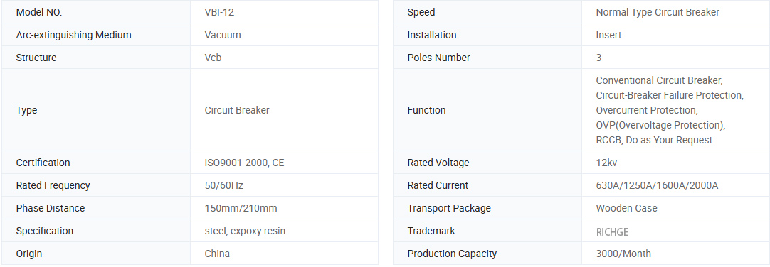 VBI-12 vidaus aukštos įtampos vakuuminės grandinės pertraukiklis yra trifazis AC 50Hz, vardine 12 kV vidaus įrenginio įtampa. Pramoninėms ir kasybos įmonėms, elektrinėms ir pastotėms, kaip elektros įrangos kontrolei ir apsaugos tikslams, ir dažnai eksploatuoti vietą.